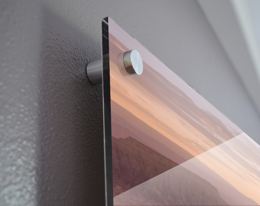 Printed to the edge - Ready to hang - provided with 4 premium polished aluminum stand off ( wall screws and mounting hardware provided )
