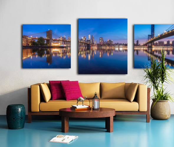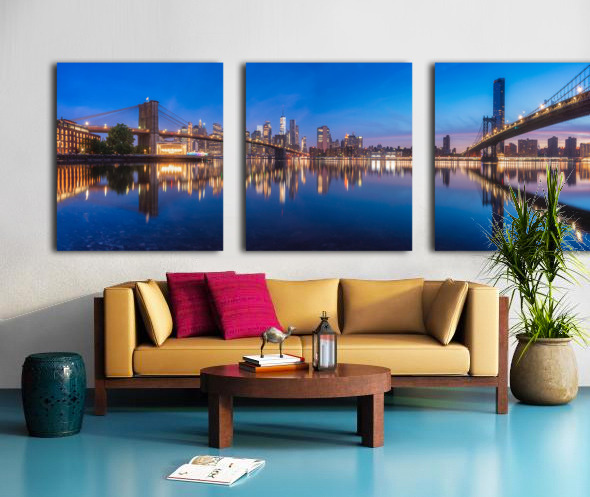 ABOUT THIS ARTWORK: BROOKLYN AND MANHATTAN BRIDGES | NEW YORK CITY PANORAMA WALL ART