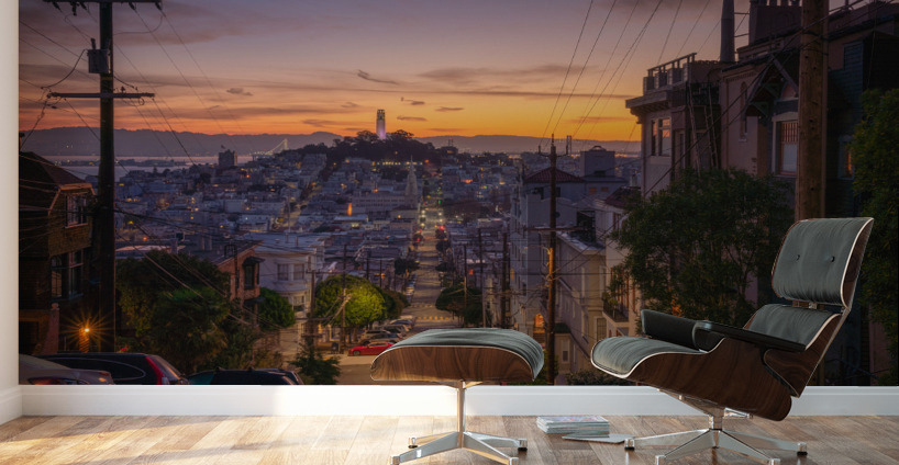 Beautiful colorful sunrise above the streets of San Francisco