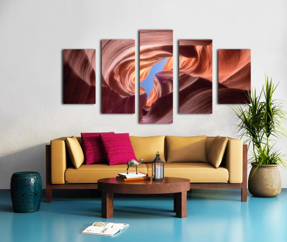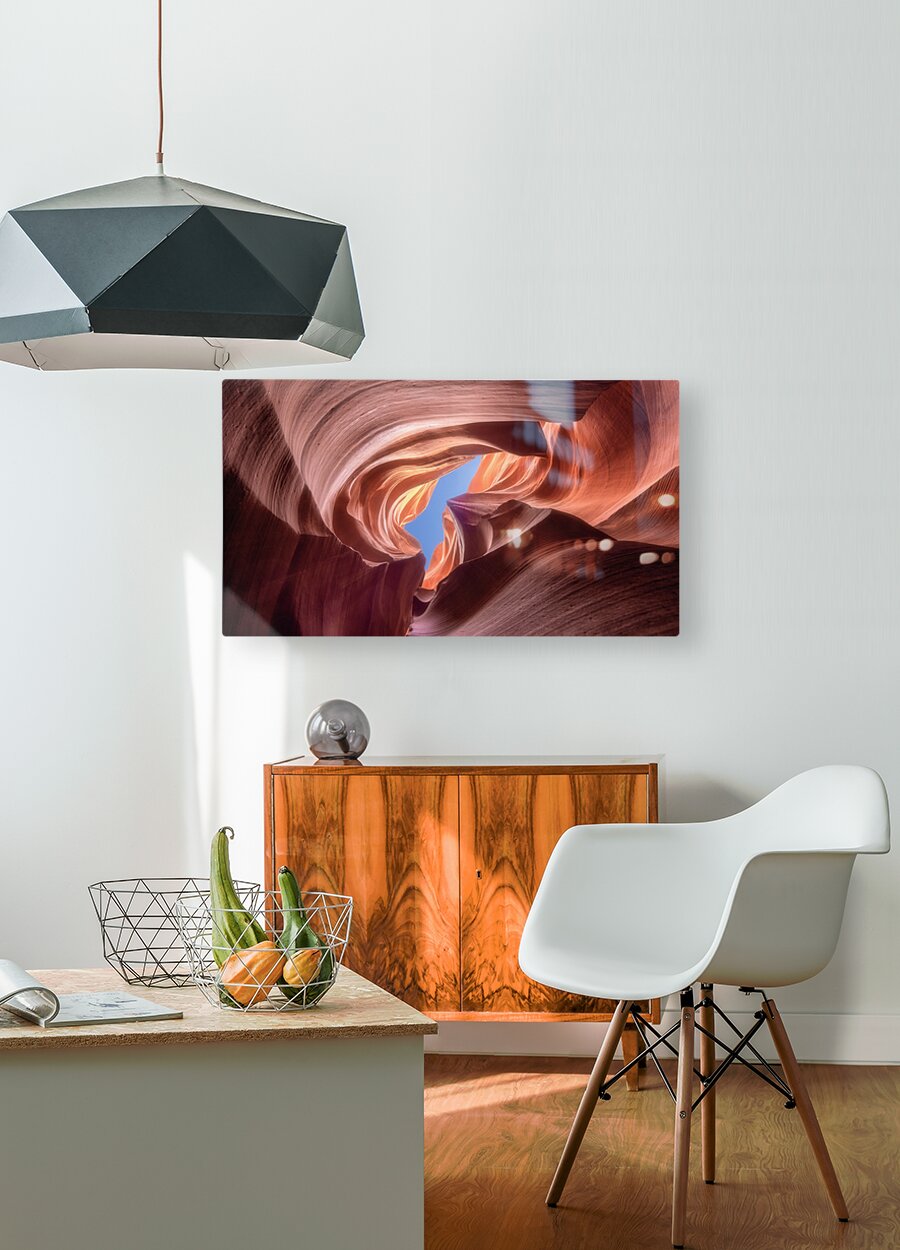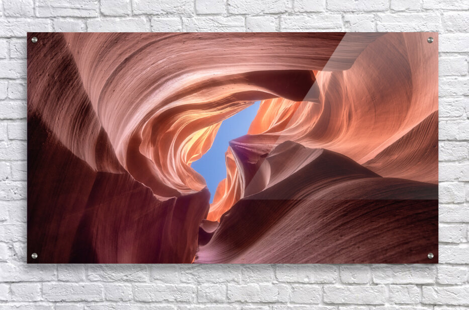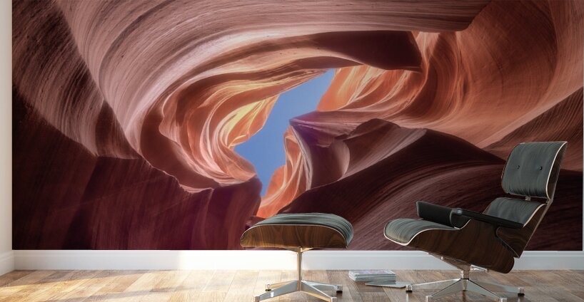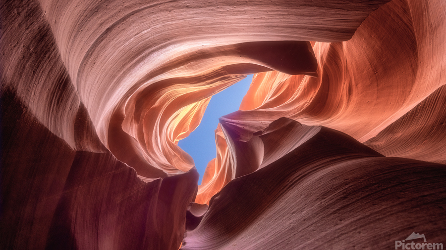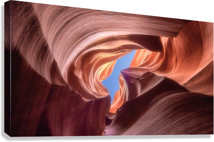 Step into the sculpted beauty of the American Southwest with this vibrant photograph from Lower Antelope Canyon. Lower Antelope Canyon Page Arizona captures swirling sandstone formations in warm hues of red, orange, and pink, contrasted by a patch of blue sky above. The natural curves and textures reveal the canyon’s geological artistry, offering a serene and immersive perspective on nature’s design. This image is perfect for lovers of desert landscapes, abstract nature photography, and atmospheric wall art. Available in canvas, acrylic, metal, mural, framed print, rolled print, and digital download formats. Each print includes a certificate of authenticity, ensuring its value and uniqueness.