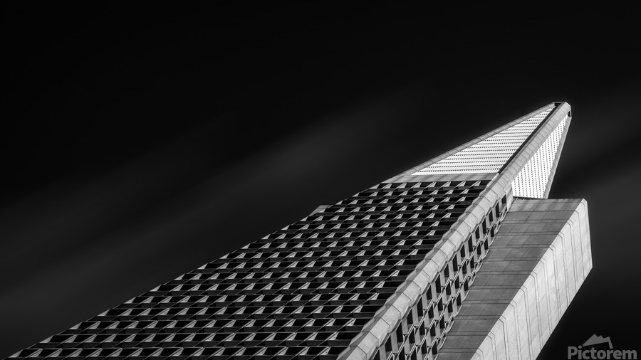Discover the bold geometry of San Francisco’s skyline in this black-and-white architectural photograph. Transamerica Pyramid San Francisco captures ...[+]