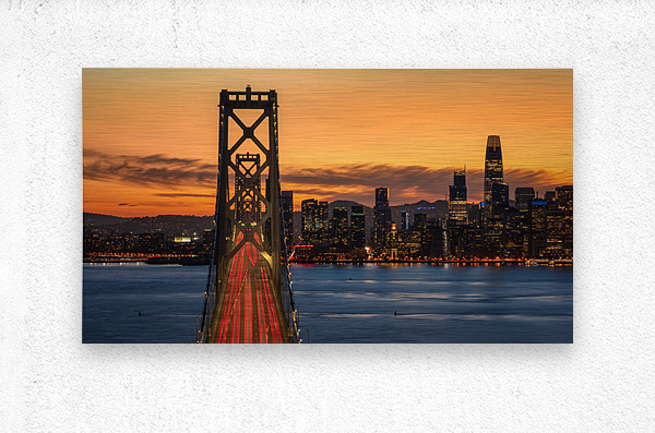 Long exposure capture of the San Francisco skyline and Bay Bridge.