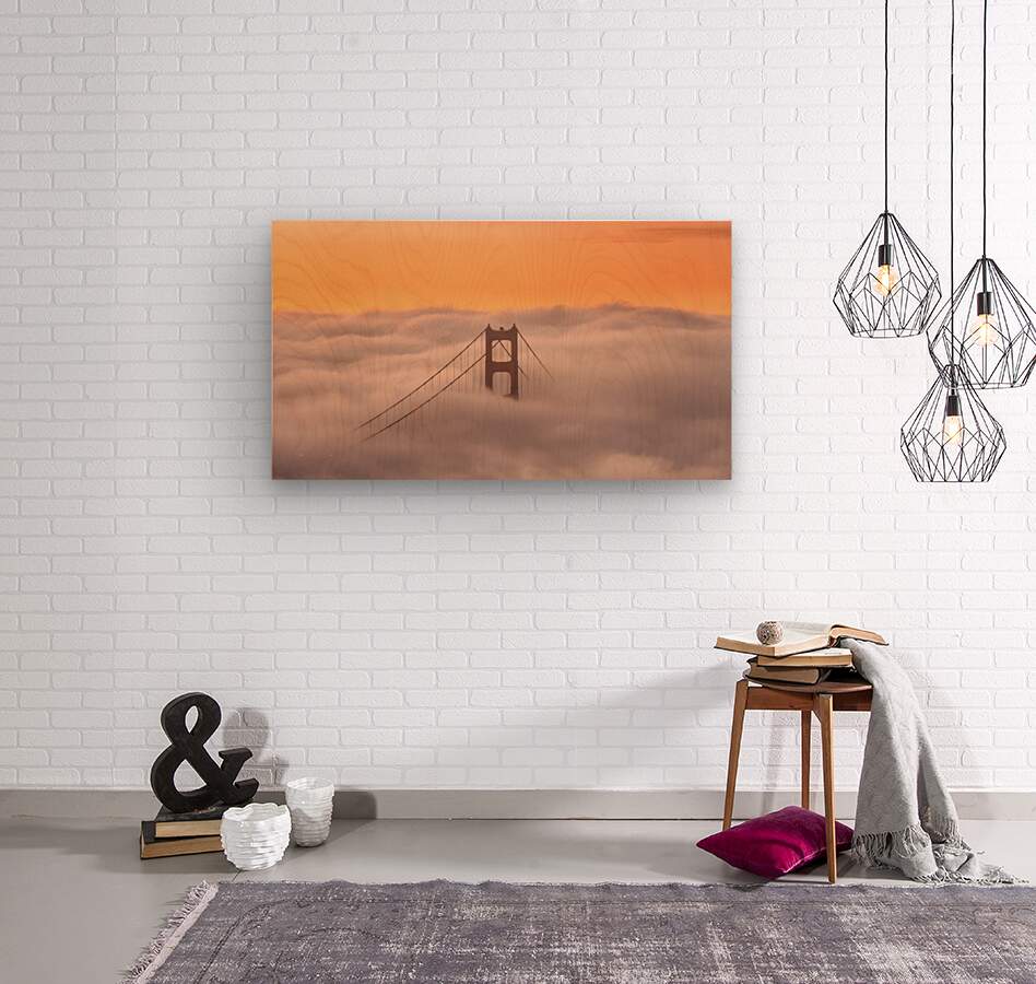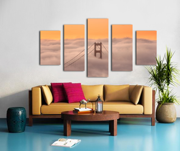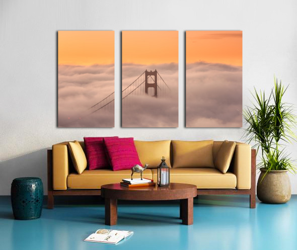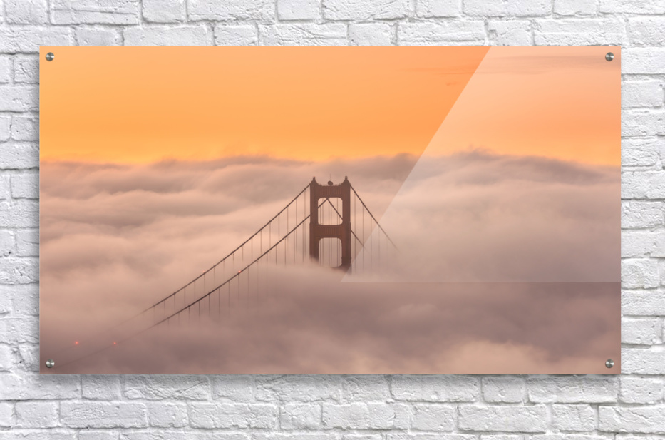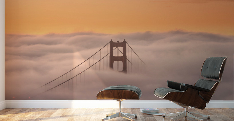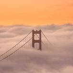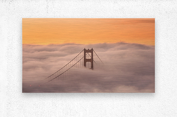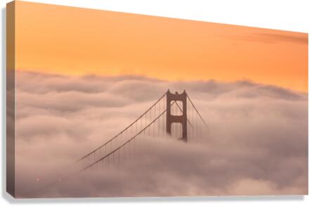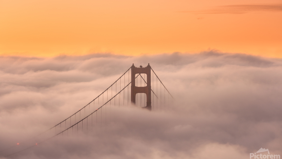 One of the Pillar of The Golden Gate Bridge rises above the clouds at sunrise.