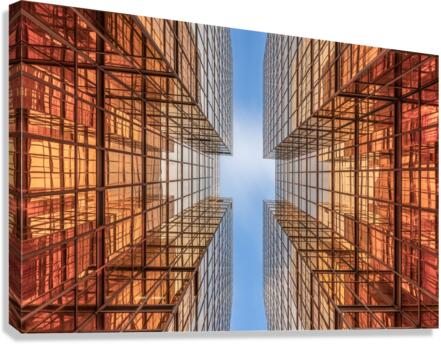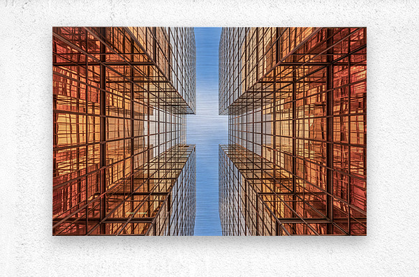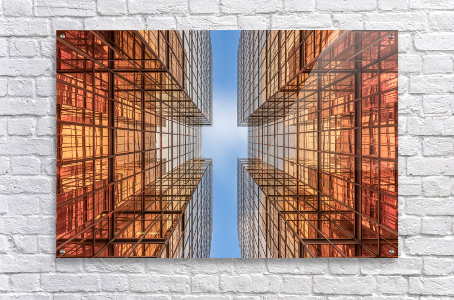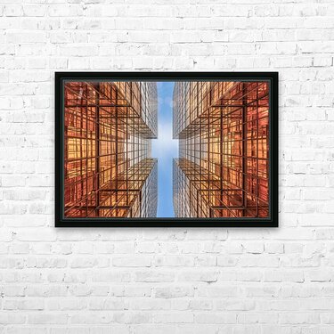 Dive into the golden geometry of Kowloon with this bold architectural photograph. Gold Digger Hong Kong captures a look-up perspective between two high-rise buildings with reflective glass facades in warm tones of orange and gold. The symmetrical composition draws the eye toward the blue sky, creating a dynamic contrast between color, form, and light. This image is perfect for lovers of modern architecture, urban symmetry, and vibrant city photography. Available in canvas, acrylic, metal, mural, framed print, rolled print, puzzle, and digital download formats. Each print includes a certificate of authenticity, ensuring its value and uniqueness.