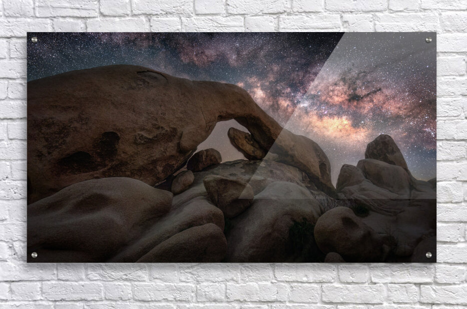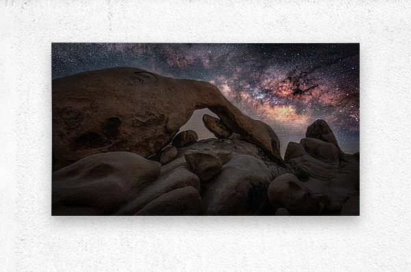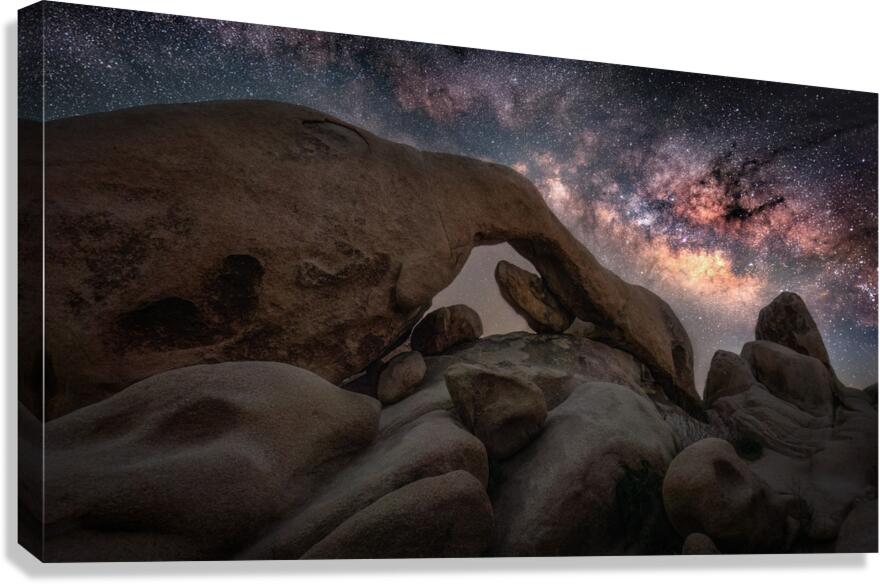 Experience the magic of the desert night in this awe-inspiring photograph of Arch Rock in Joshua Tree National Park, California. Arch rock joshua tree national park captures the iconic rock formation beneath a brilliant display of the Milky Way galaxy. The star-filled sky stretches across the frame, illuminating the rugged landscape with cosmic wonder. This image offers a serene and powerful perspective on nature and the universe, perfect for admirers of night photography, desert scenery, and celestial beauty. Available in canvas, acrylic, metal, mural, framed print, rolled print, and digital download formats. Each print includes a certificate of authenticity, ensuring its value and uniqueness
