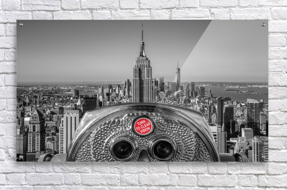 See New York through a timeless lens in this iconic skyline photograph. Manhattan Classic captures the Empire State Building from the Top of the Rock, framed by a vintage coin-operated viewer with the words “TURN TO CLEAR VISION.” The composition blends nostalgia with grandeur, offering a layered view of Manhattan’s architectural legacy stretching toward the horizon. This image is perfect for lovers of city photography, classic perspectives, and urban storytelling. Available in canvas, acrylic, metal, mural, framed print, rolled print, and digital download formats. Each print includes a certificate of authenticity, ensuring its value and uniqueness.